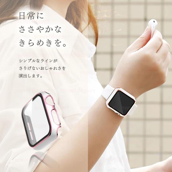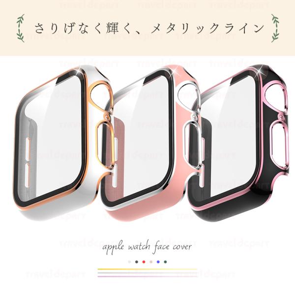 アップルウォッチ カバー ケース ライン キラキラ apple watch series 6 SE 5 4 3 2 1 レディース おしゃれ 傷防止 保護 ゴールド 一体型