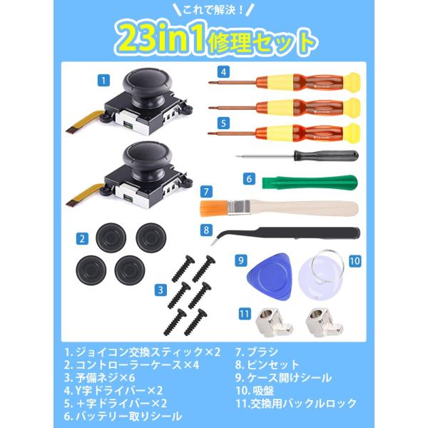 ニンテンドー スイッチ ジョイコン 修理 セット 工具フルセット 23in1 Joy-con 修理キット スティック 修理 左 右 片方 両方 コントローラー