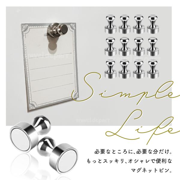 マグネット ピン 強力 収納 フック シルバー 12個セット おしゃれ 強力 かわいい シンプル Magnet Pin ネオジム磁石