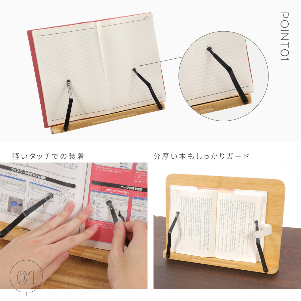 本やレシピブック、タブレットなど様々なものに利用可能。