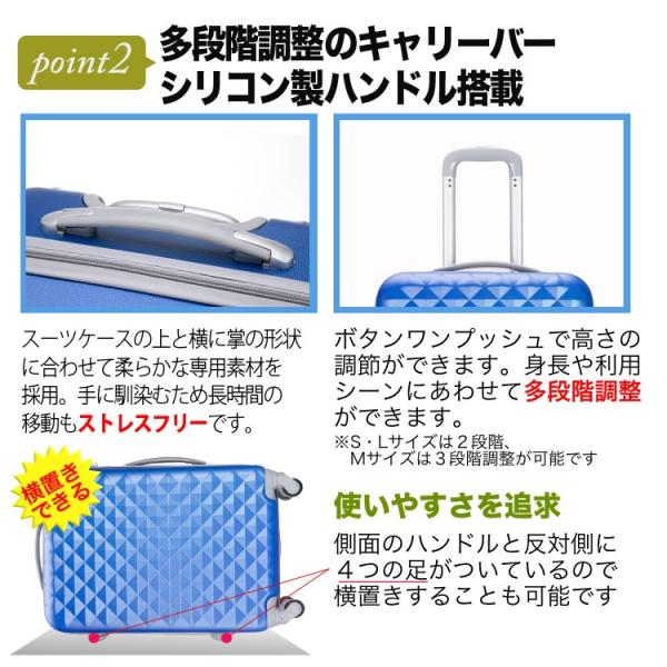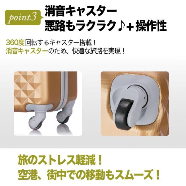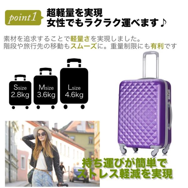スーツケース キャリーケース キャリーバッグ かわいい ダイヤ柄 Lサイズ 大型 TSAロック搭載 海外旅行 3年保証 トラベルデパート