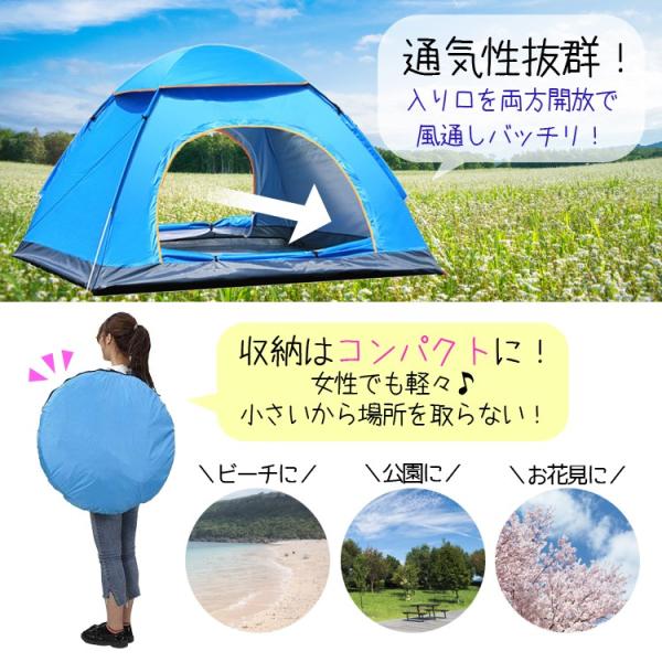 ワンタッチテント 3人用 4人用 初心者用テント テント アウトドア 簡単 軽量 日よけ キャンプ サンシェード uvカット フルクローズ