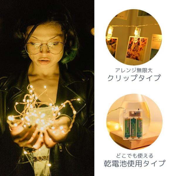 LED フォトクリップ 20灯 3m イルミネーション ガーランド ライト 北欧 ジュエリーライト かわいい インテリア 暖色 キャンプ 誕生日 クリスマス