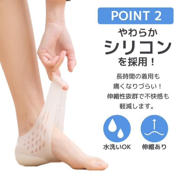 伸縮性抜群のやわらかいシリコン素材で衝撃吸収し、歩行時の疲労を軽減します。