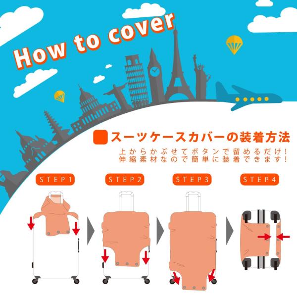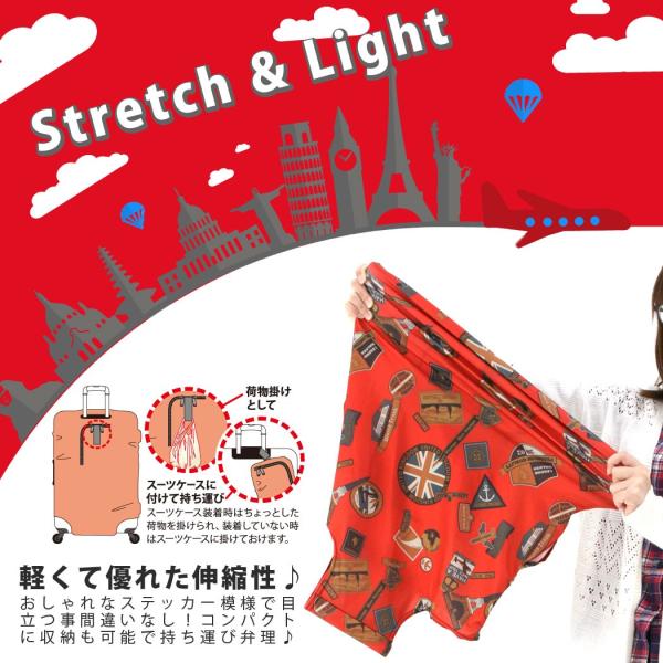ある程度いろいろな種類のスーツケースにフィットするように、ストレッチ性のある伸縮性バツグンの生地から作られています。