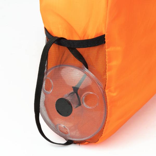 ・バッグを広げた時、丸い透明ケースはバッグのサイドポケットに収納可能です。