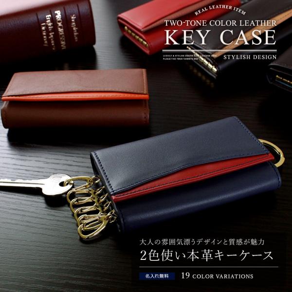 名入れ 2色使い本革キーケース 名前入り メンズ レディース ペア 還暦祝い プレゼント 誕生日 バレンタイン 卒業祝い 車 おしゃれ 5連 20 30 40 50代 60代