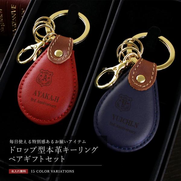 名入れ ペアギフトセット レザーキーリング(ドロップ型) おしゃれ 3連 夫婦 両親 結婚 プレゼント キーホルダー 記念 2個