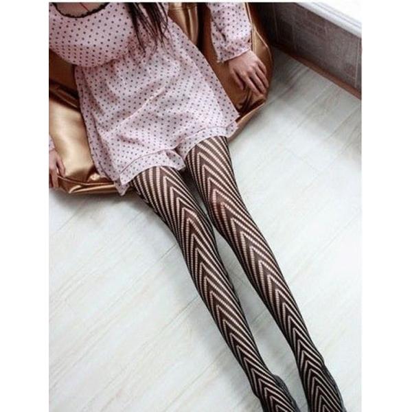 在庫処分 セール 美脚ストッキング 柄 ストッキング 網タイツ パンスト V字ストライプ柄 9-1623