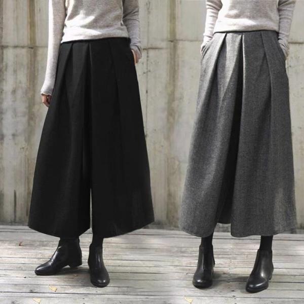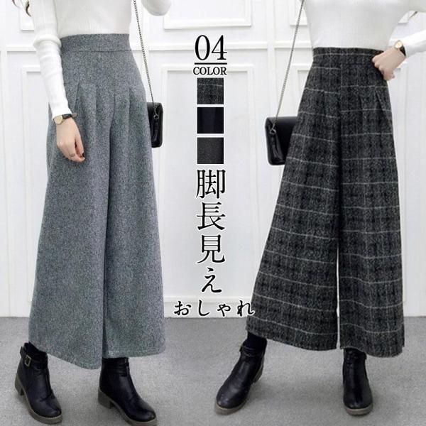 ガウチョパンツ レディース ワイドパンツ ハイウエス スカーチョ 秋冬 厚手 体型カバー ボトムス 美脚 ズボン カジュアル 無地 きれいめ 九分丈