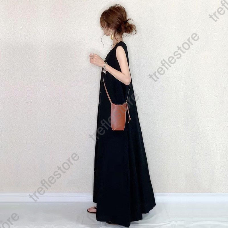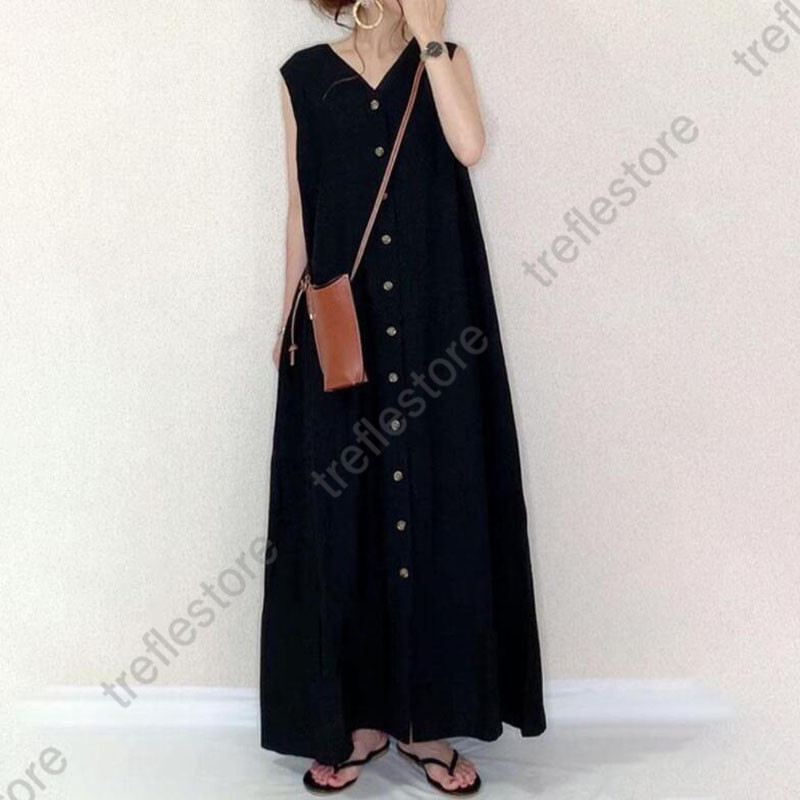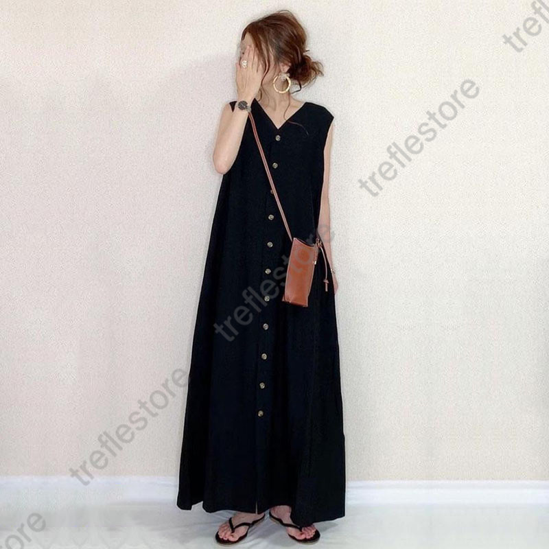夏ワンピース 20代30代 ノースリーブ ロングワンピース 40代50代 タンクトップワンピース Aラインワンピース ゆったり 綿 Vネック 無地 ボタン レディース