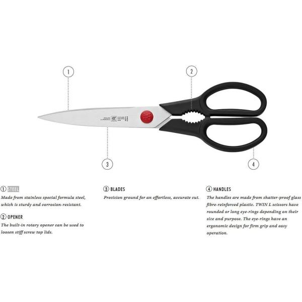 軽量だから使いやすい、ツヴィリングのキッチンバサミのエントリーモデル。長時間使い続けても手にストレスをかけない軽量設計で、持ちやすさを考慮し設計されたハンドルデザイン。コストパフォーマンスにも優れた、エントリーモデルの定番です。