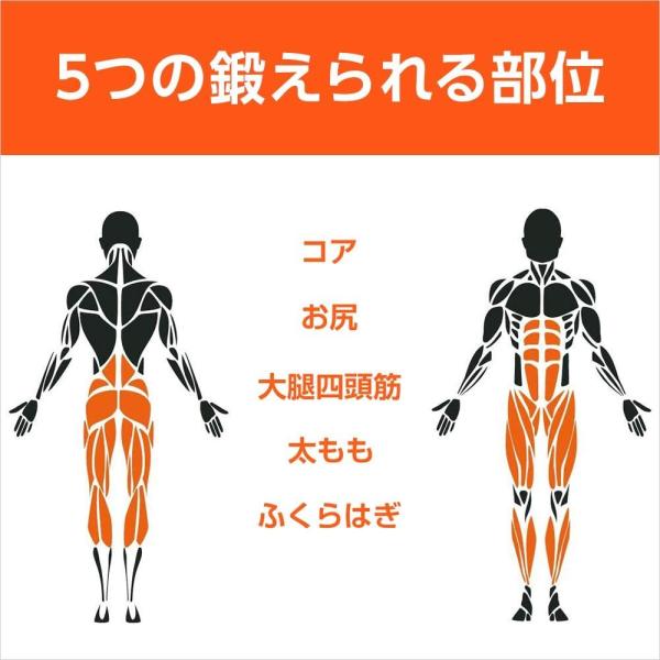 ● 5度の傾斜設計が、スクワットで痛めがちな関節への負担を軽減。正しいフォームでスクワットできるから、ヒップ、腹筋、太ももなど、5つの部位を同時に鍛えられる。