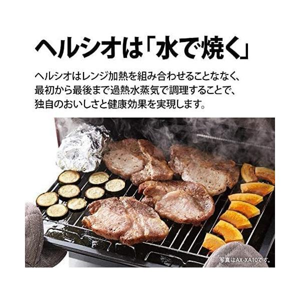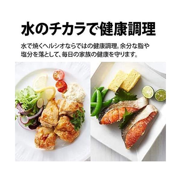 ウォーターオーブンヘルシオは、最初から最後まで水だけで焼く家庭用のオーブンです。好みの食材をのせるだけ!のカンタングリル調理、おくだけグリル。分量も材料もアレンジOK!お好きな食材をボウルに入れてメニューを選ぶだけで、1〜4人分まで自動で野菜を使った1品メニューやパスタメニューが作れます。パンも焼きたてのようなおいしさたっぷりの過熱水蒸気を入れながら加熱するので、買ってきたパンが、作りたてのようなおいしさに復元できます。(冷凍から常温までOK)。お惣菜もおいしく復元。スチームの水の膜で食品を覆うことで、食品全体をほどよく解凍します。らくチン!センサー搭載だから、仕上がりを見極めW数・時間設定なしでかしこくあたためます。庫内の温度もチェックするから、オーブン加熱の後などで庫内の温度が高くても連続で調理やレンジ加熱が可能です。一体感のあるブラック液晶を採用した、スタイリッシュなデザインです。