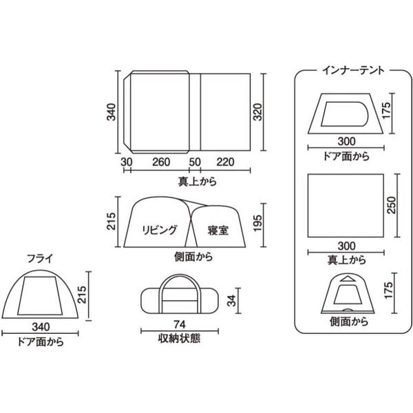 ●材質:フライ/75D ポリエステルタフタ(ダークルーム、UVPRO、PU防水、シームシール) インナー/68Dポリエステルタフタ フロア/210Dポリエステルオックスフォード(PU防水、シームシール) ポール/(リビング)アルミ合金約φ16mm (寝室)アルミ合金約φ14.5mm (リッジ)アルミ合金 約φ11mm (キャノピー)スチール約φ19mm(180cm)