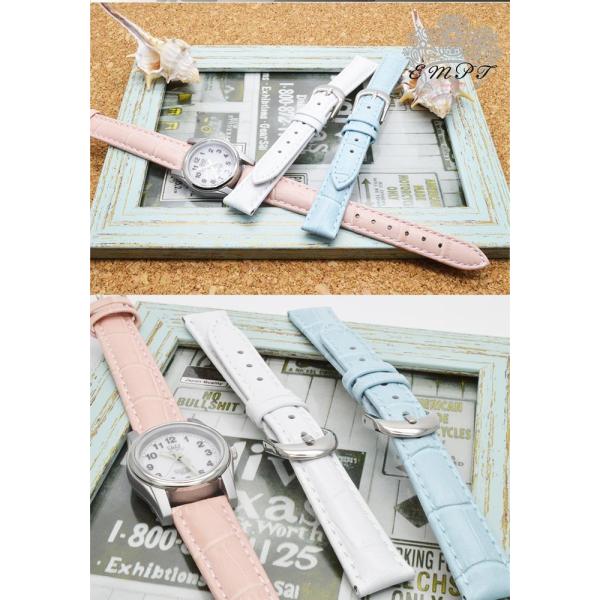 腕時計 ベルト 時計 替えベルト バンド 革ベルト empt Ladys レディース ピンク ブルー ホワイト 桃 青 白 替えバンド バネ棒外し 12mm 14mm 16mm