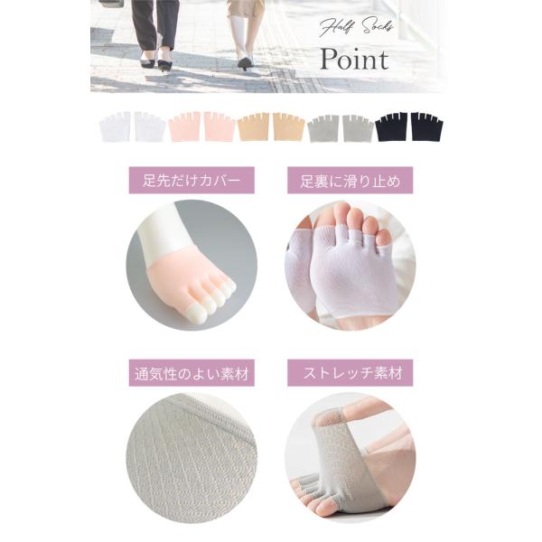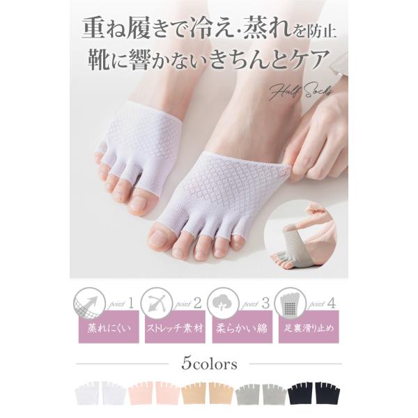 5本指 ハーフソックス つま先なし レディース フットカバー 五本指 ソックス 5本指タイツ インナー 夏 滑り止め すべり止め サンダル パンプス つま先カバー