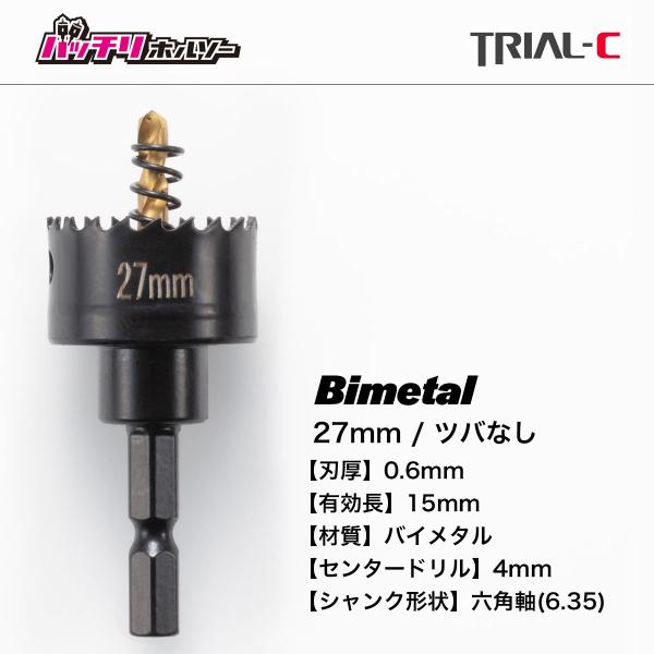 ホールソー 27mm 薄刃(0.6mm) バイメタルホールソー ツバなし 貫通 ホールソーインパクト用 六角軸