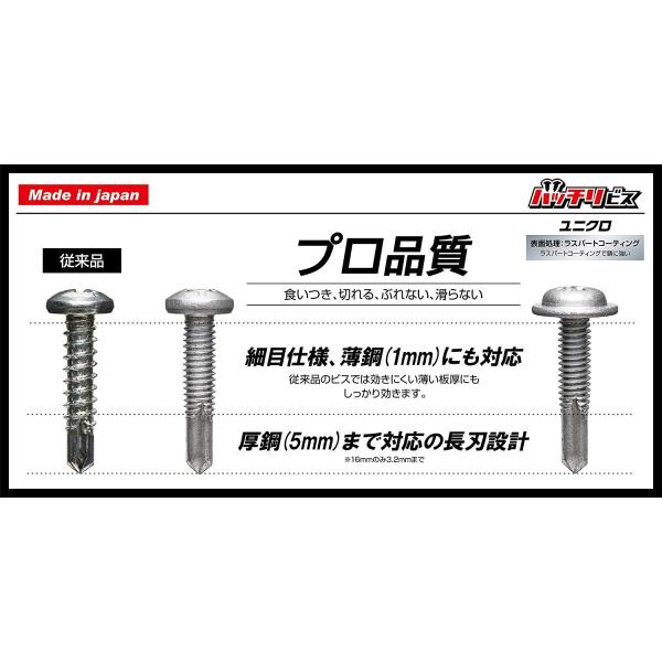 ドリルビス ユニクロ 4mm×16mm 座付 細目 70本入 ビス シンワッシャー ドリルネジ 鉄板ビス 通販 業務用工具 バッチリビス