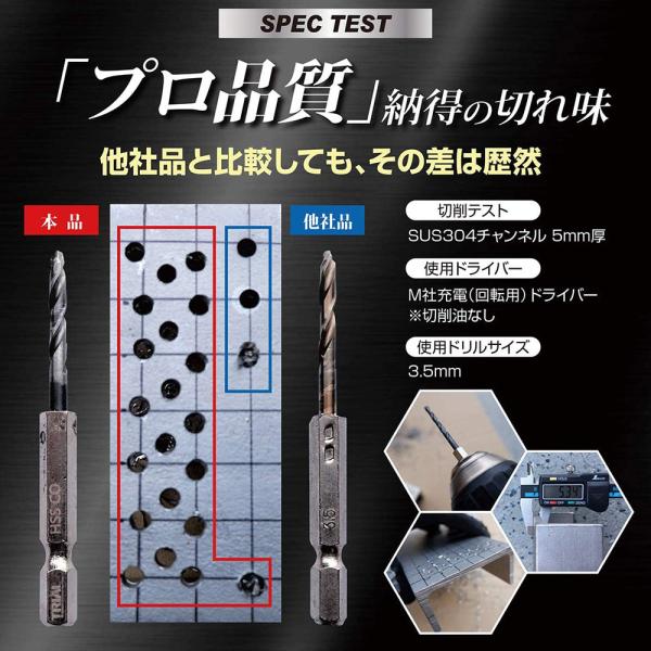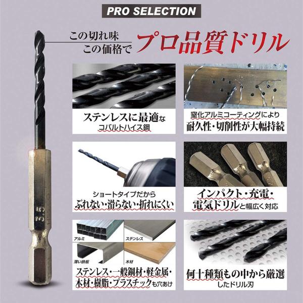 六角軸 ステンレス・鉄工用 ドリルビット キリ ケースセット(10本組) コバルトドリル 鉄鋼ドリル インパクト用