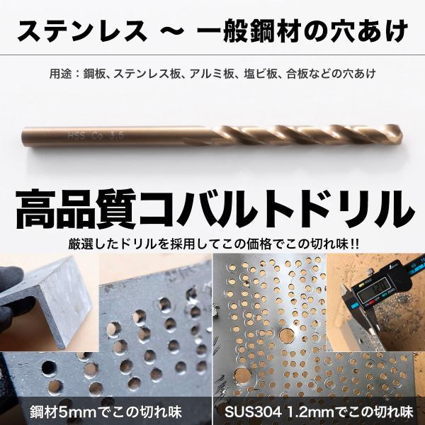 コバルトドリル 3.5mm ステンレス用ドリル 10本組 ステンレス・鉄工用 コバルトハイス ドリル ストレートドリル キリ 丸軸 鉄工用ドリル 穴あけ 電動ドライバー ボール盤