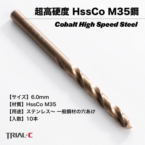 コバルトドリル 6.0mm ステンレス用ドリル 10本組 ステンレス・鉄工用 コバルトハイス ドリル ストレートドリル