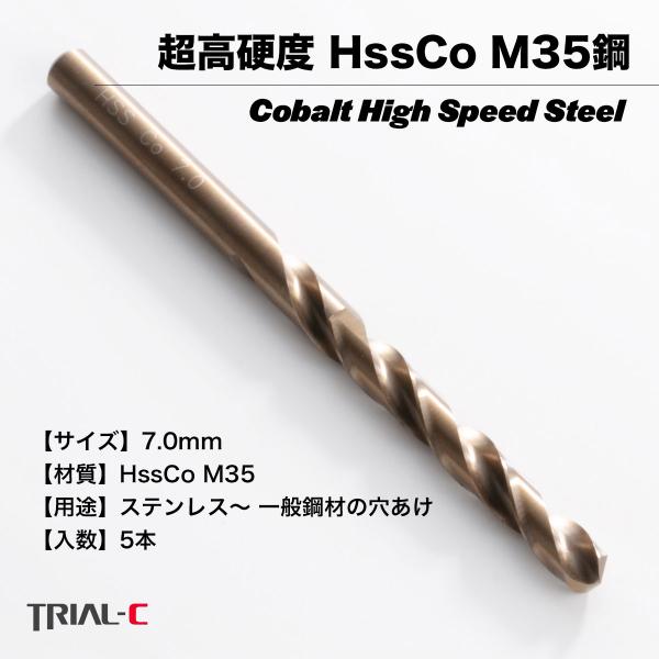 コバルトドリル 7.0mm ステンレス用ドリル 5本組 ステンレス・鉄工用 コバルトハイス ドリル ストレートドリル