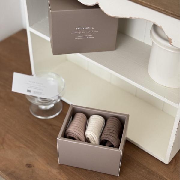TRICK HOLIC socks 3足セット beige / brown / ivory 靴下3足セット ソックス 韓国製 トリックホリック