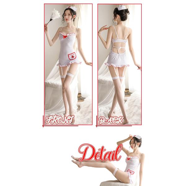 ガーターベルト付きワンピース ナースキャップ(ヘアピン固定式) Tバック ※ヘアピンは付属いたしません