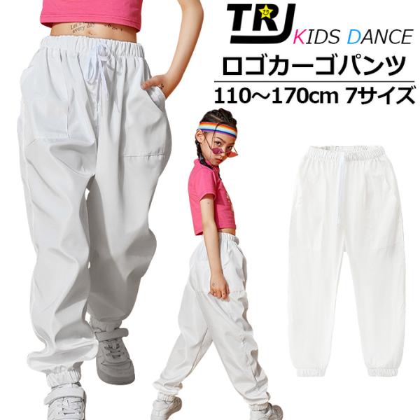 キッズダンス衣装 カーゴパンツ ワイドパンツ ダンスパンツ 女の子 男の子 子供服 キッズ 無地 白色 ジャージ 110cm〜170cm ダンス衣装 ヒップホッ