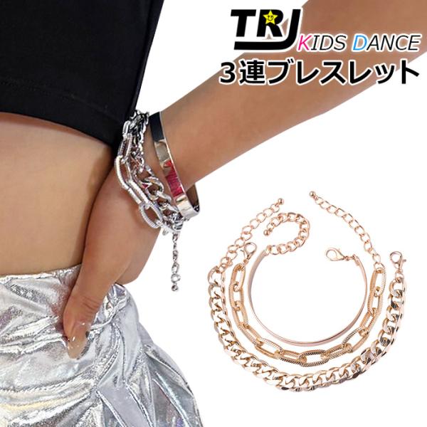 キッズダンス衣装 ブレスレット3本セット マンテルブレスレット チェーン アクセサリー ブレス 女の子 男の子 キッズ 太チェーン シルバー ゴールド ネックレ