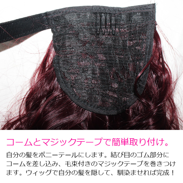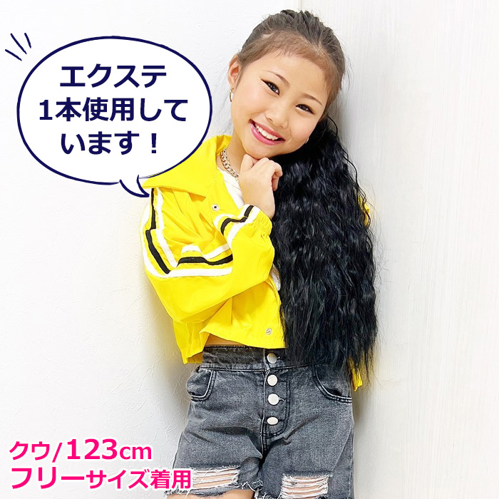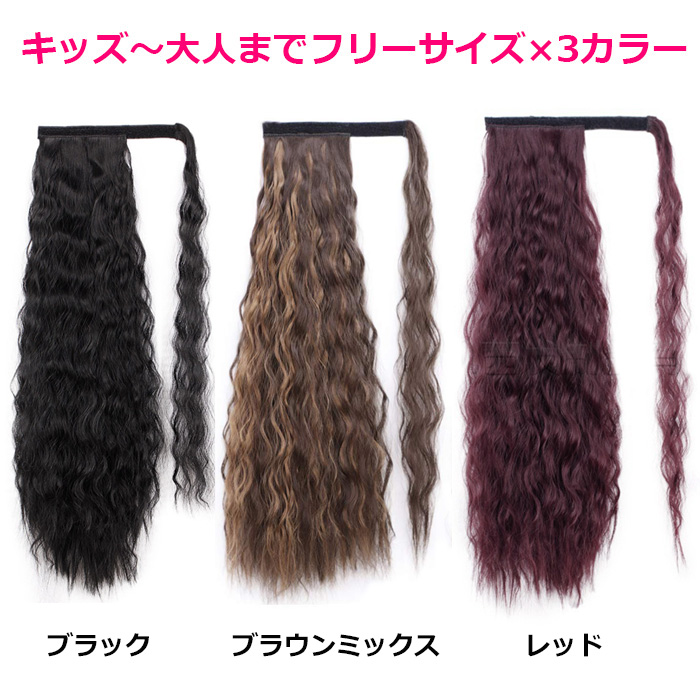 キッズダンス衣装 ウェーブ エクステ ボリューム ヘアーエクステンション ポニーテール 女の子 子供 キッズ カール レッド/ブラック/ブラウンミックス 長さ5