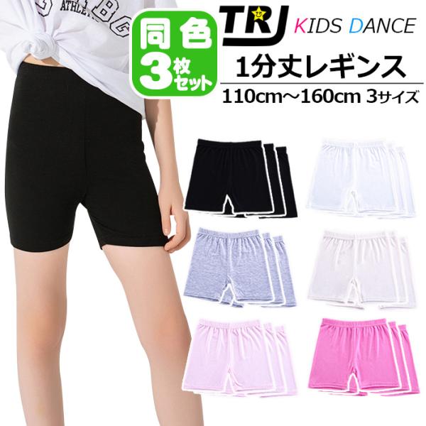 キッズダンス衣装 同色3枚セット キッズ 1分丈 レギンス 女の子 オーバーパンツ 無地 110cm〜160cm 1分丈 スパッツ インナーパンツ アンダーパン