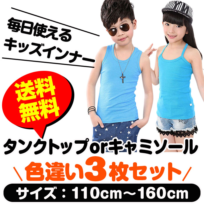 キッズダンス衣装 送料無料 訳あり 色違い3枚セット タンクトップ キャミソール 女の子 男の子 子供服 肌着 キッズ 無地 110〜160cm ダンス衣装 ヒップホップ