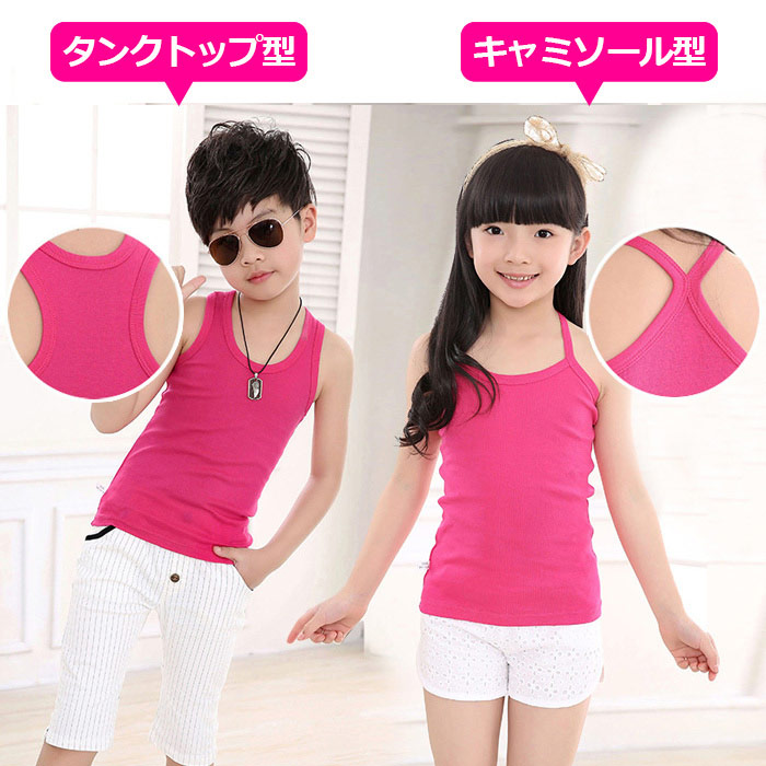シンプル無地の子供向けカラータンクトップ。