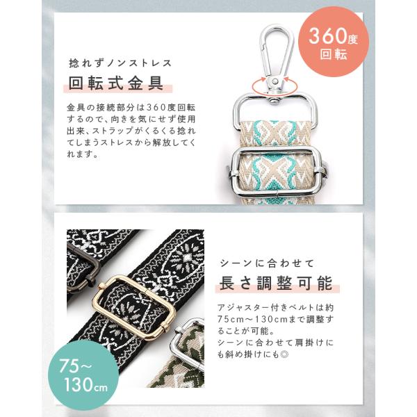 ショルダーストラップ 模様 ショルダーベルト 柄 単品 太め 肩ひも バッグストラップ 幅広 ショルダー紐 スマホストラップ 金具 シルバー ブラック 爆買