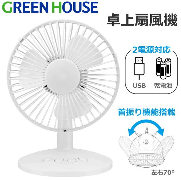 【夏先取り価格!】卓上扇風機 自動首振り 上下 角度調整 USB 電池 卓上 小型 扇風機 GREENHOUSE GH-FANSWI GHFANSWI ホワイト グリーンハウス GH-FANSWI-WH