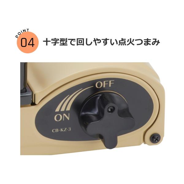 ・十字型で持ちやすく回しやすい点火つまみ