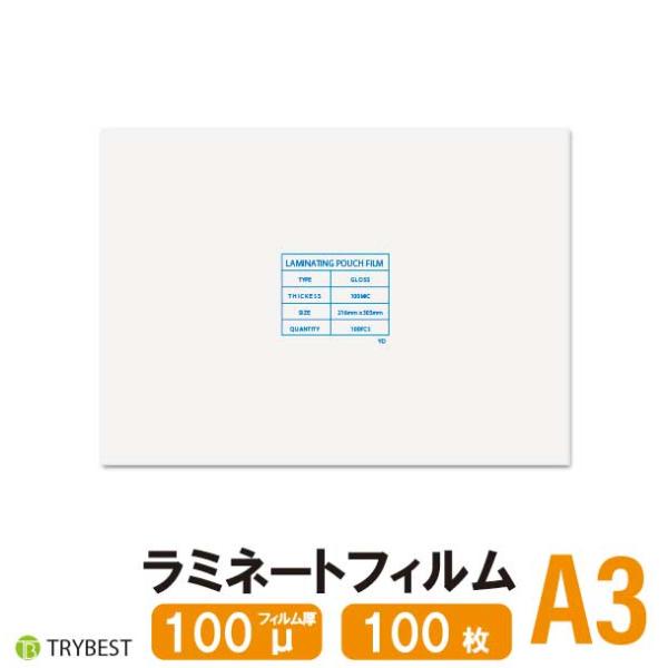 ラミネートフィルム A3 100枚 100ミクロン 303×426mm ラミネーターフィルム パウチ 送料無料