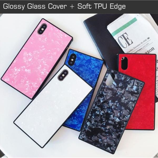 iPhoneXR ケース iPhoneXs Max ガラスケース 四角 8 おしゃれ Plus 7 6s スクウェア スクエア パステル アイフォン アイホンカバー スマホ 四角シェルガラス