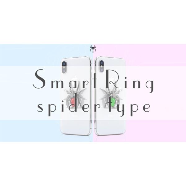 ・輝くメタリックボディのスパイダーにカラフルなストーンがかっこいいスマホリング