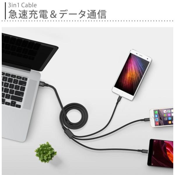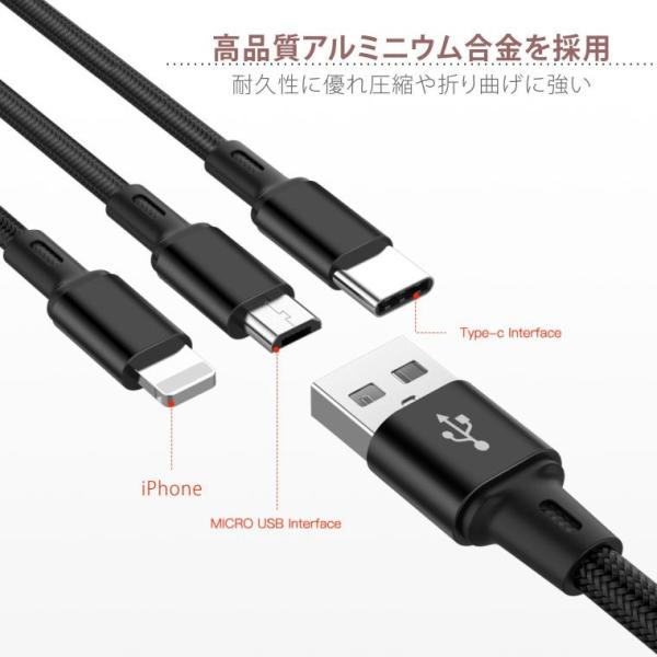 iPhone 充電ケーブル Type-C Micro USB 3in1 急速充電 Android モバイルバッテリー 充電器 高耐久 2.4A 1.2m ポイント消化