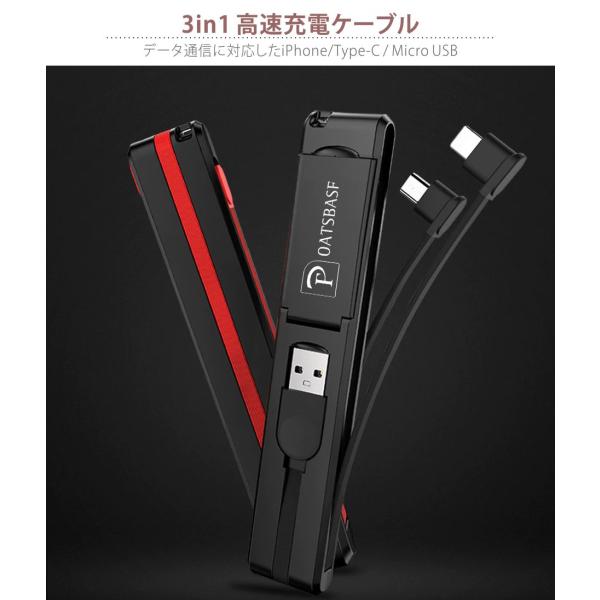 iPhone 充電ケーブル 短い Type-C micro USB Android コード 急速充電 短い スタンド機能付き モバイルバッテリー 3in1スタンド