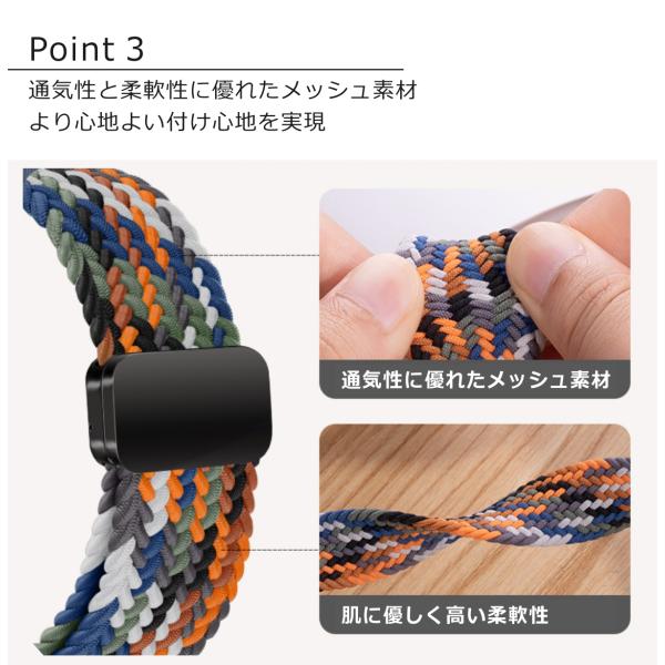 バンドはナイロンメッシュ素材で通気性と伸縮性に優れており、ソフトなフィット感で快適なつけ心地を提供します