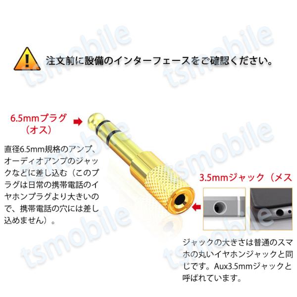 auxアダプター 金メッキ 6.5mmオス⇔ 3.5mmメス コネクタ 3.5AUXジャック AUXアダプタ ヘッドホン φ6.5mm φ3.5mm 変換 スピーカー イヤホン マイク 楽器