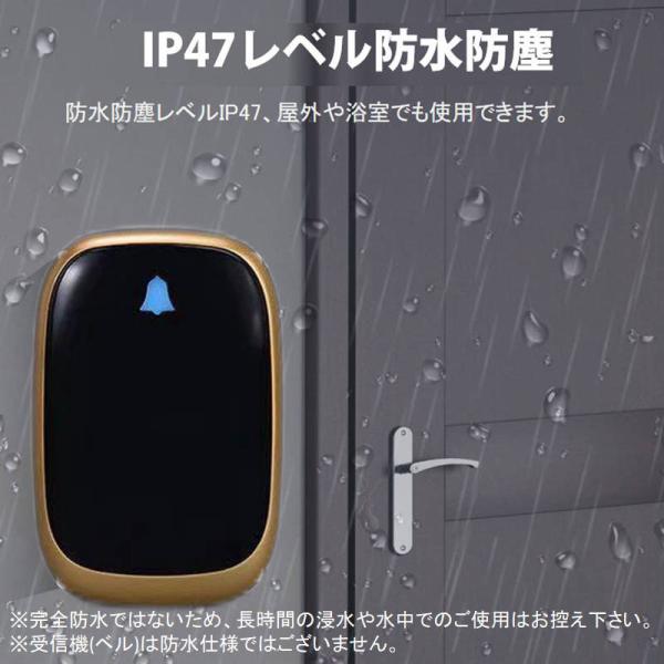 発信機は混信しにくい設計で、電波の妨害を受けにくく安定した動作を実現。IP47の防水仕様のため、屋外玄関や浴室周辺でも使用可能です。