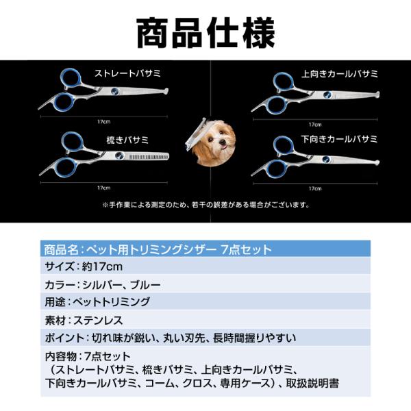 ペット トリミングシザー 7点セット 犬 トリミングハサミ 丸い刃先 安全 スキバサミ カーブバサミ 抜け毛 コーム 初心者 トリマー 簡単 小型犬 中型犬 持ち運び