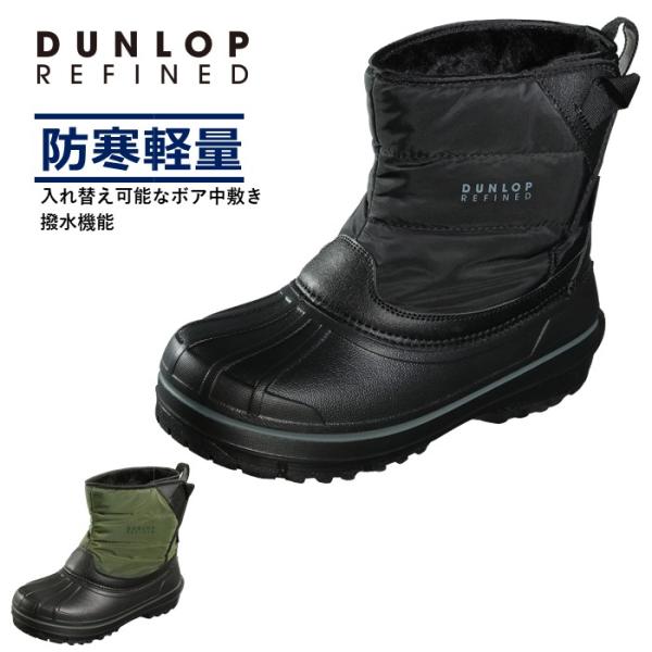 スノーブーツ メンズ 防寒 ウインターブーツ ミドルブーツ 撥水 ファスナー付き ダンロップ リファインド DA3105 軽量 撥水機能 入れ替え可能ボア中敷き