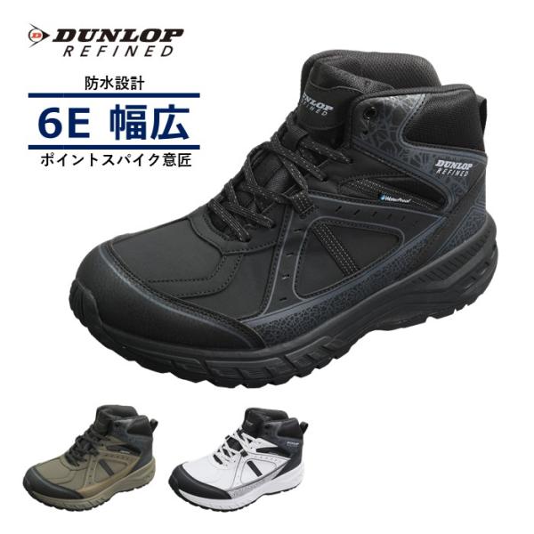 防水シューズ 防滑 雨の日 防水スニーカー ウォーキングシューズ 幅広 6e ミッドカット メンズ ひも靴 ダンロップ リファインド DU6015 寒さ対策 アウトドア 靴