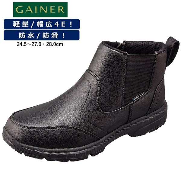 ショートブーツ メンズ カジュアルシューズ 防水 スニーカー 雨 雪 滑りにくい 靴 ウォーキング ミッドカット 幅広 ファスナー付き ゲイナー GN0146 ビジネス